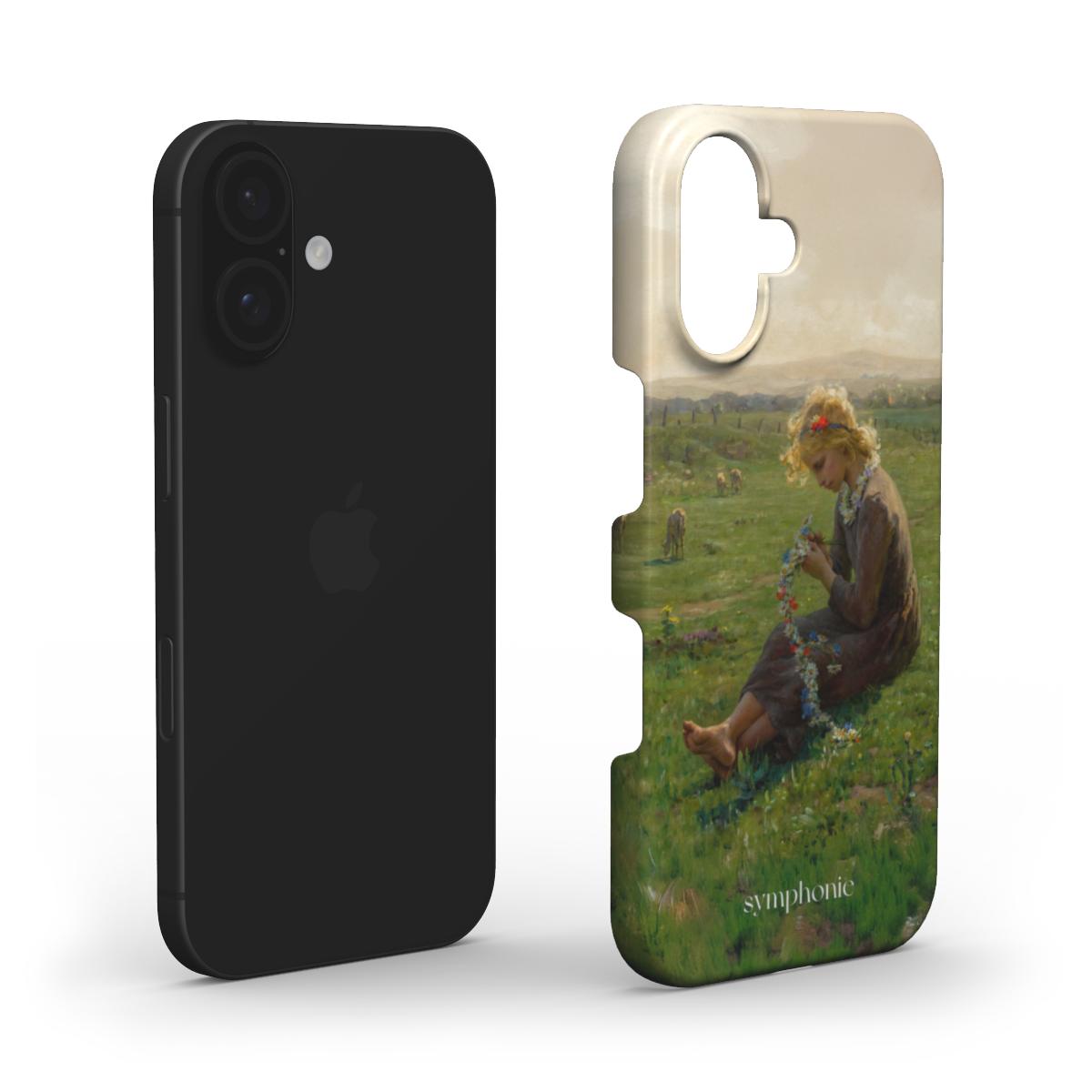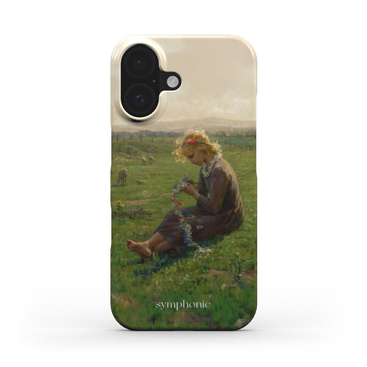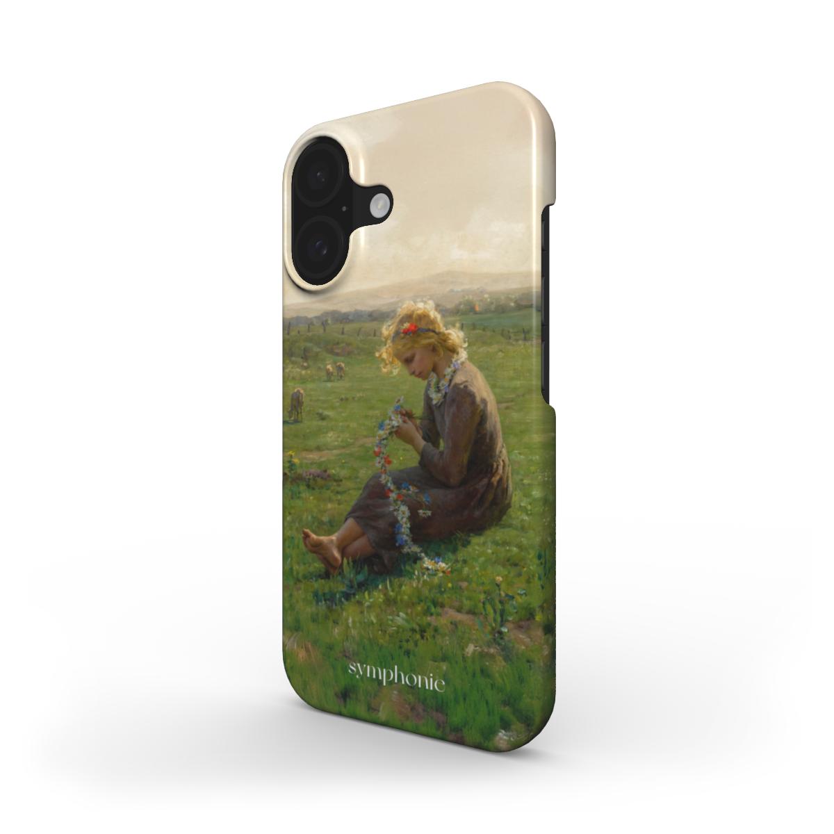 In Fillette à la guirlande de fleurs des champs (1890), Virginie Demont‑Breton offers a tender portrait of youth entwined with nature. A young girl cradles a garland of wildflowers against a softly rendered landscape, embodying innocence and pastoral grace. This design speaks to those who treasure purity, childhood whimsy, and the enduring charm of country life.